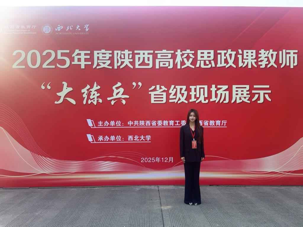 近日,陕西省委教育工委、省教育厅公布了2025年度陕西高校思政课教师“大练兵”省级展示结果名单。太阳成集团tyc234cc古天乐太阳成集团tyc234cc古天乐青年教师刘雨璇凭借扎实的教学功底和出色的现场表现,在全省80所高校166名教师中脱颖而出,喜获一等奖。